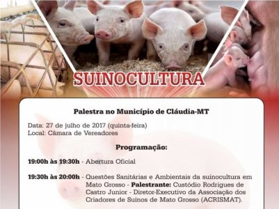 Acrismat ministrará palestra para suinocultores de Cláudia